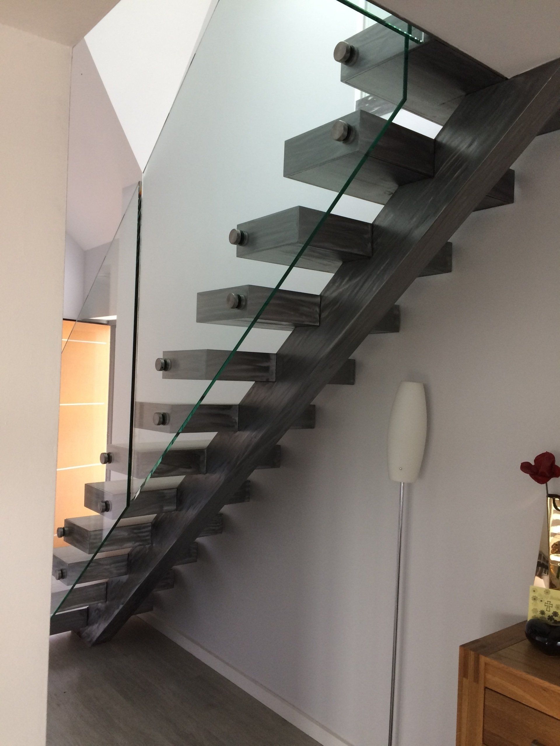 We usually supply clear toughened glass within our staircases, however, different glazing effects can be provided, such as frosted, opaque.